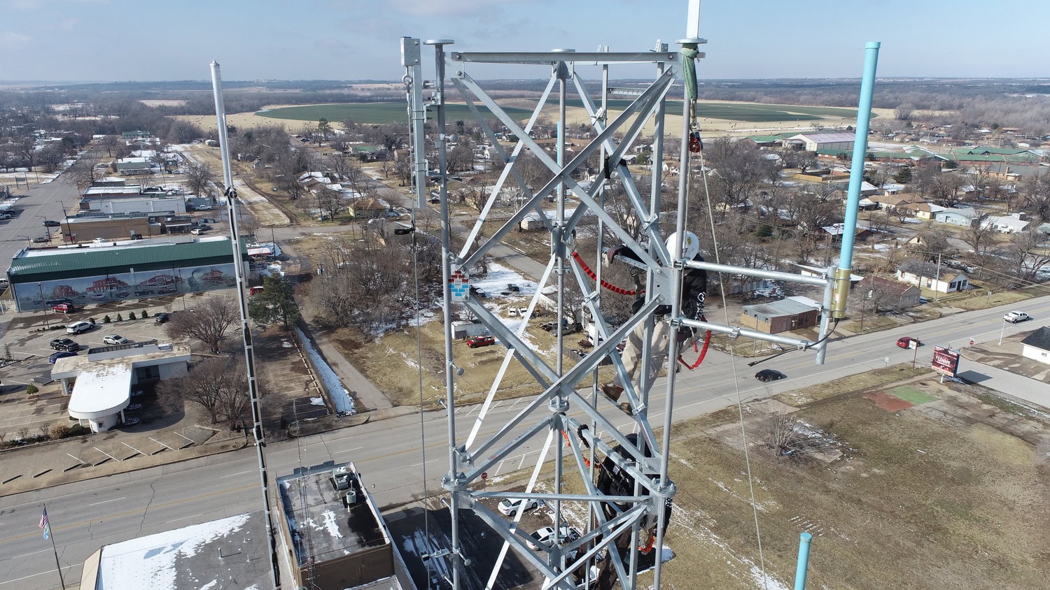 As prime contractor on this firm fixed price task order project, Tepa constructed a 150-foot communications self-supporting tower (SST) and installed a shelter in Anadarko, Oklahoma. Construction included installation of conduit for feedlines, power lines, and ethernet connections to the shelter and tower locations. Grading at the site and surrounding path was required for the installation of 63- by 33-foot site pad to support the government-provided shelter. Tepa constructed a 15-foot-wide, 120-foot-long vehicle access road which included grading and gravel. The 150-foot SST was erected with hot dipped galvanized sections and hardware, vertical waveguide ladder and transition to shelter, and climb ladder with anti-fall safety climb cable.