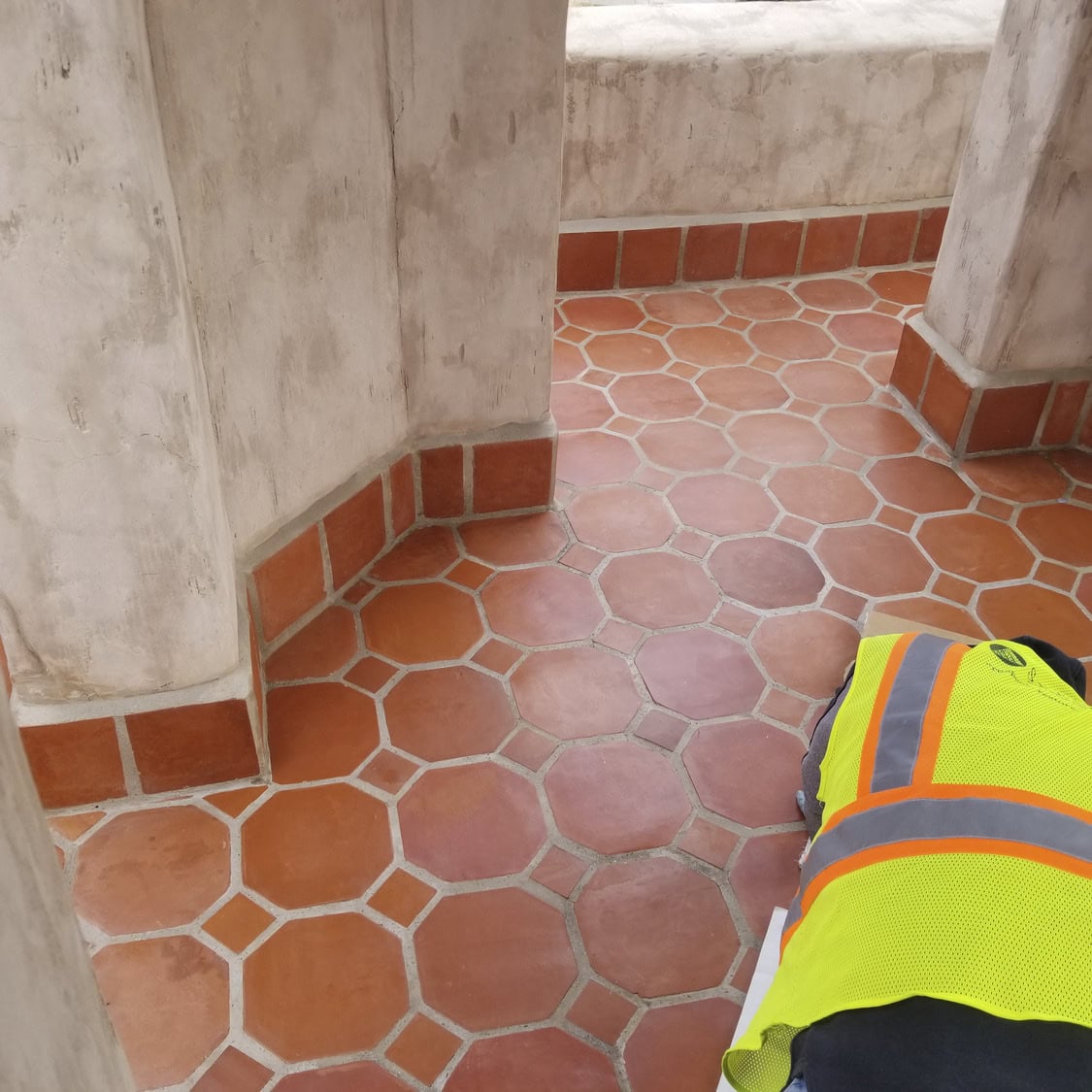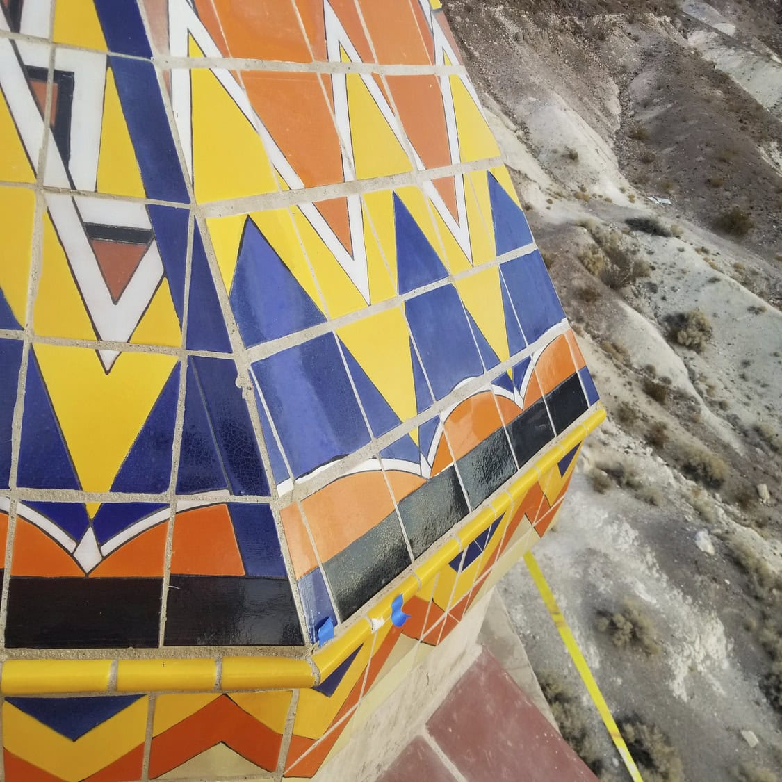 Roundhouse PBN, LLC (Roundhouse) served as prime contractor on this design-bid-build (D/B/B) historic preservation project at Scotty’s Castle. The exterior decorative tiles on the roof and upper balcony floor are a significant character-defining feature of the Chimes Tower at Scotty’s Castle. However, the tiles had issues of cracking, delaminating bisque, glaze delamination, and loss, and the grout was also deteriorated or missing. Roundhouse understood the importance of protecting the integrity of all components of the Chimes Tower. We brought onto our team a specialty subcontractor, Spectra, who executed the removal and replacement of the tiles and grout under the supervision of our On-site Superintendent/ Site Safety and Health Officer (SSHO).
