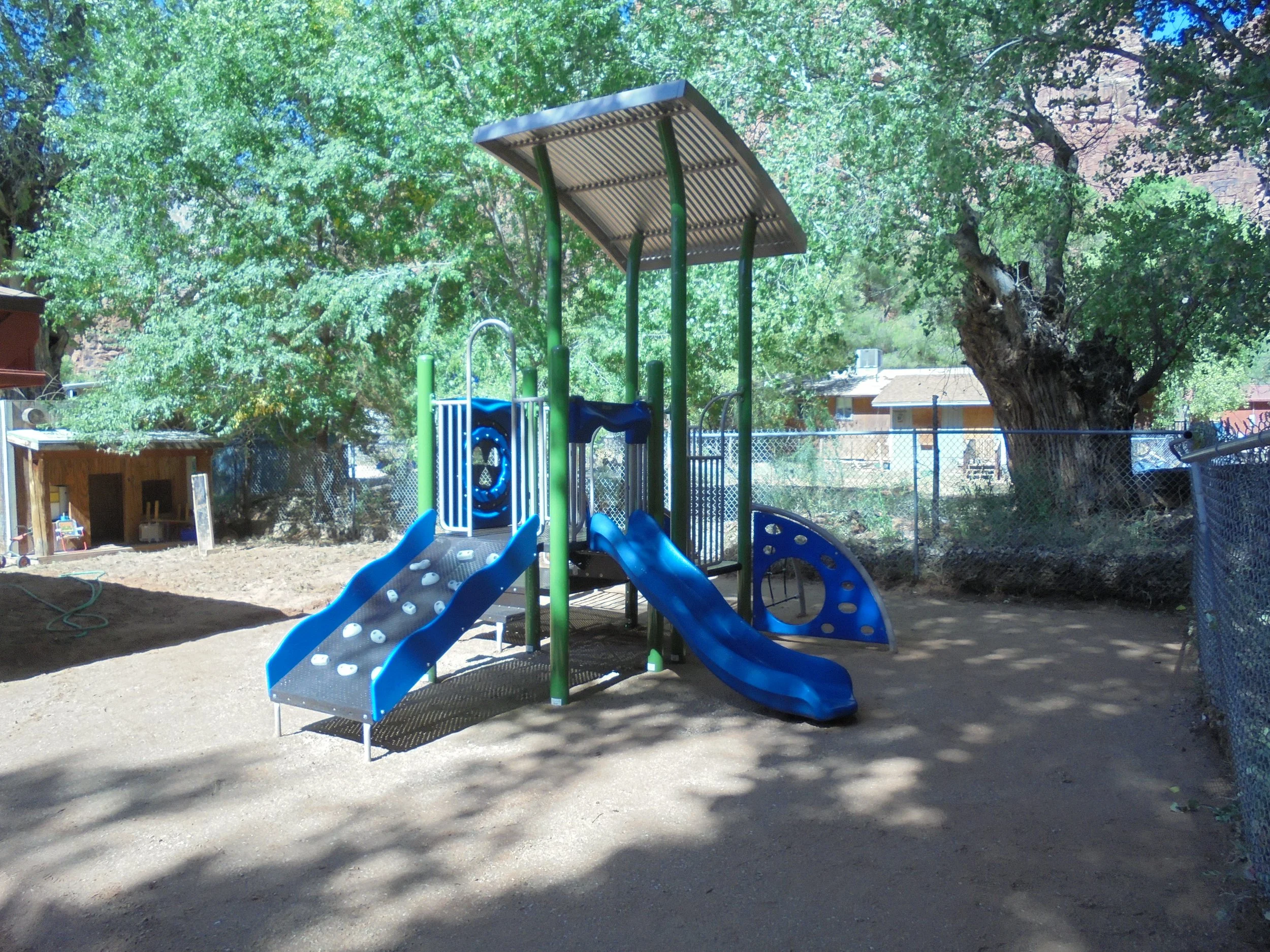 The Havasupai Elementary School serves around 70 children from the tribe and needed a new playset; their existing playground was small and outdated. The Tepa Companies was contracted to provide the school with new playground equipment, play structures, a canopy shade and ground cover to update the elementary grounds.